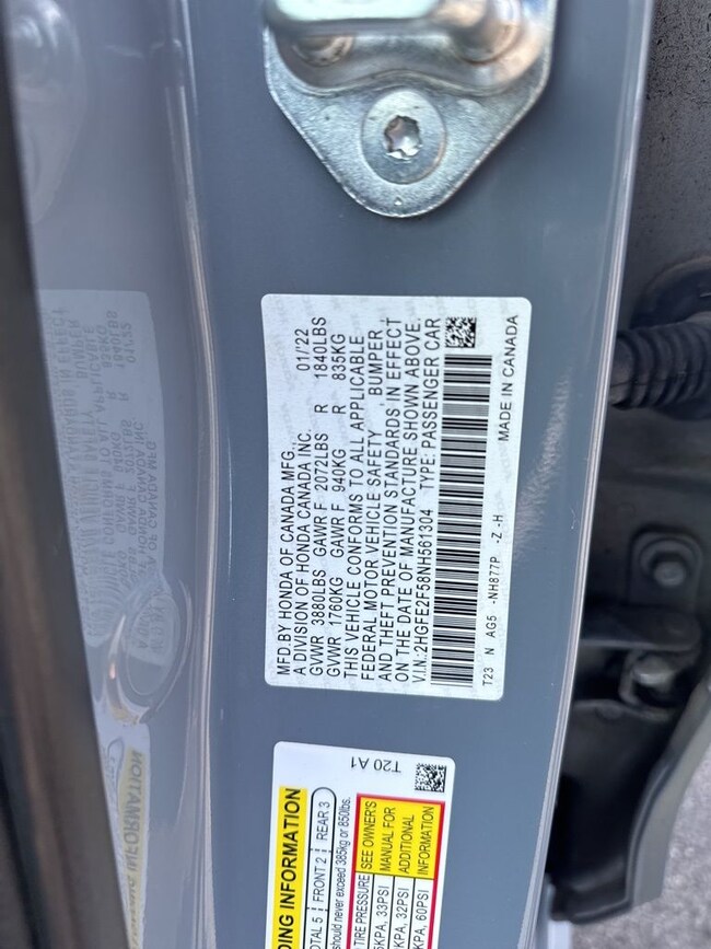 - VIN : 2HGFE2F58NH561304