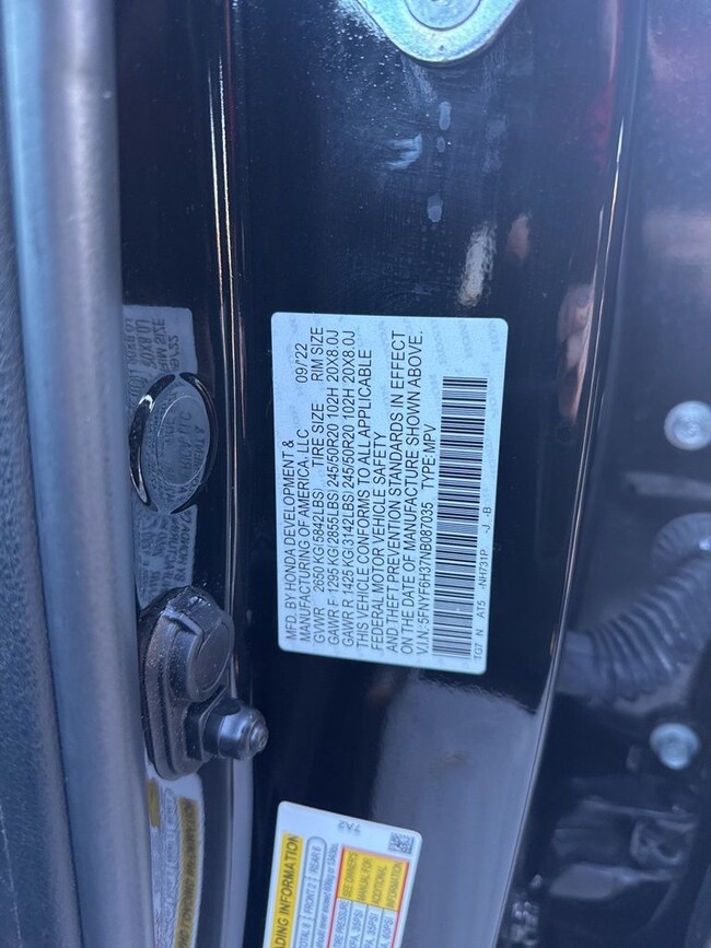 - VIN : 5FNYF6H37NB087035