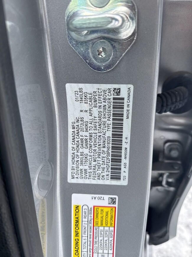 - VIN : 2HGFE2F58PH518309