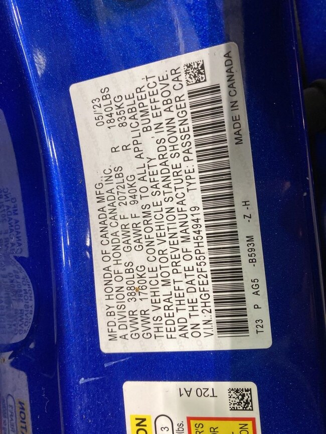 - VIN : 2HGFE2F55PH549419