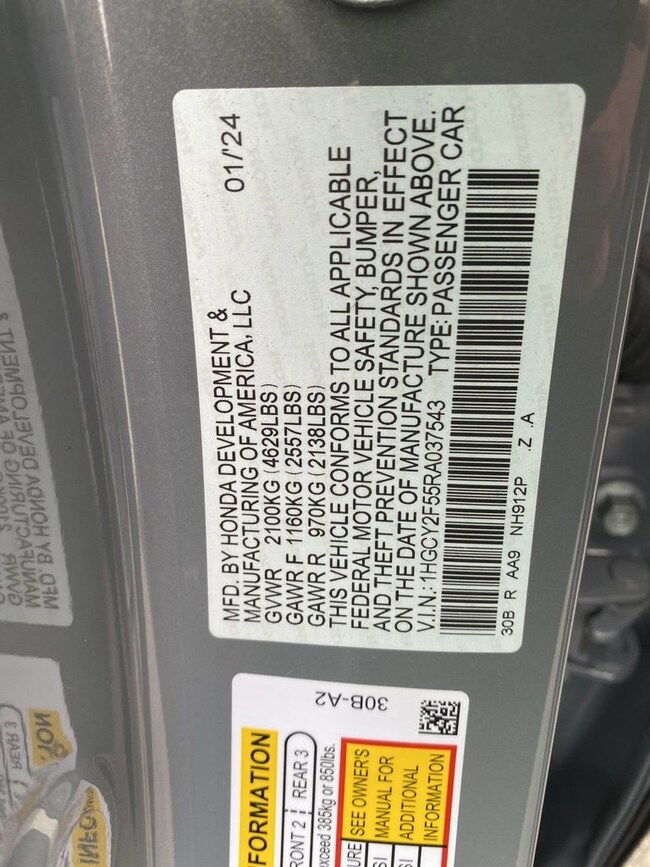 - VIN : 1HGCY2F55RA037543
