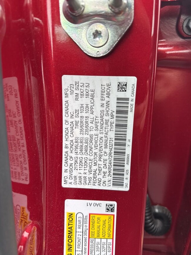 - VIN : 2HKRS4H72RH432731