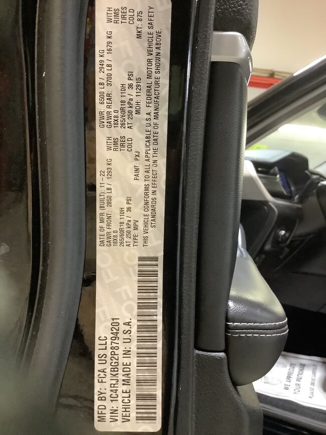 - VIN : 1C4RJKBG2P8794201