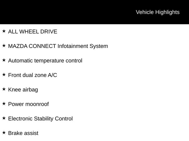- Engine : 2.5L SKYACTIV 4-Cylinder DOHC 16V 6-SPEED AUTOMATIC AWD