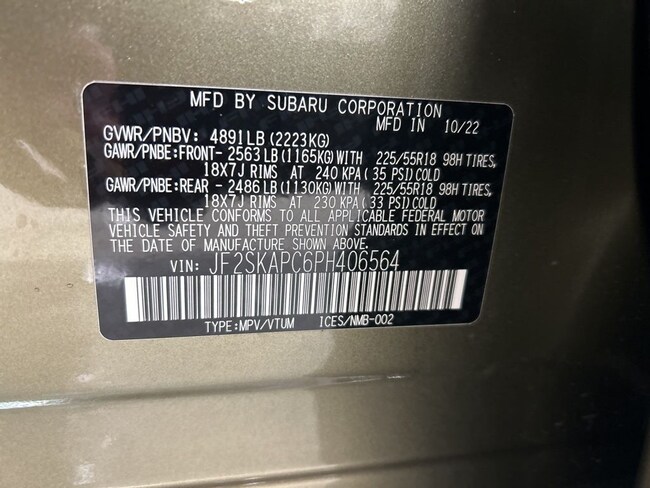 - VIN : JF2SKAPC6PH406564