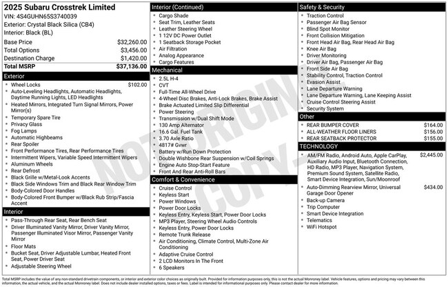 - Smart device integration: MySubaru/Apple CarPlay/Android Auto