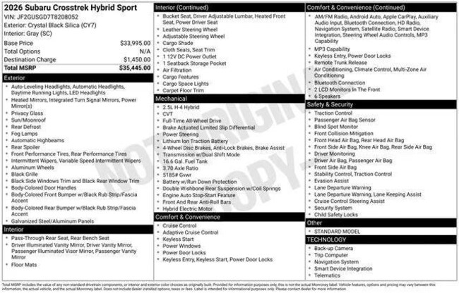 - Exterior Color : Crystal Black Silica Interior Color : GRAY
