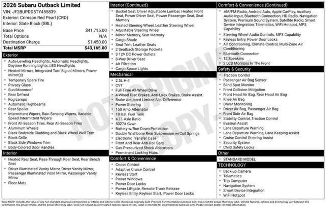 - Smart device integration: MySubaru/Apple CarPlay/Android Auto