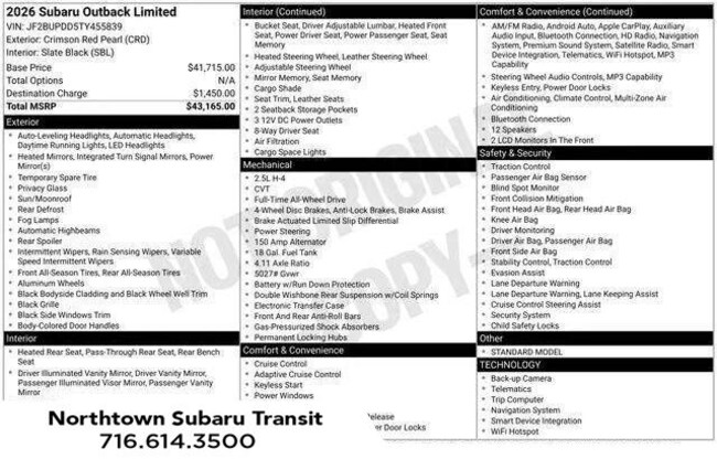 - Navigation system: MySubaru Navigator (1-year trial)