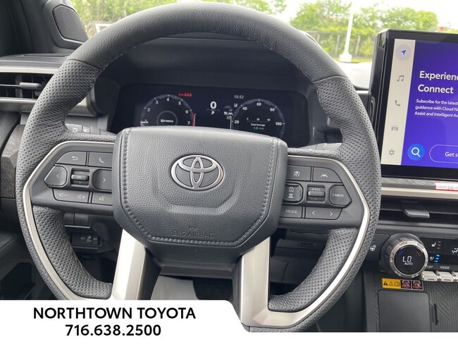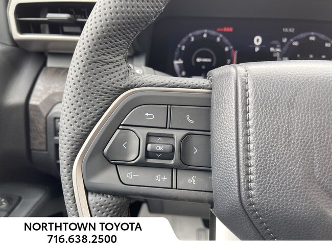 - Leather-trimmed manual tilt/telescopic heated steering wheel with phone, audio, display/infotainment, and driver assist controls.