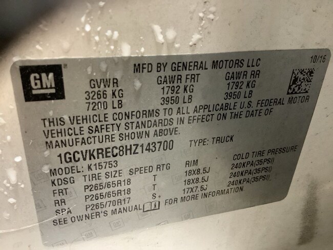 - VIN : 1GCVKREC8HZ143700