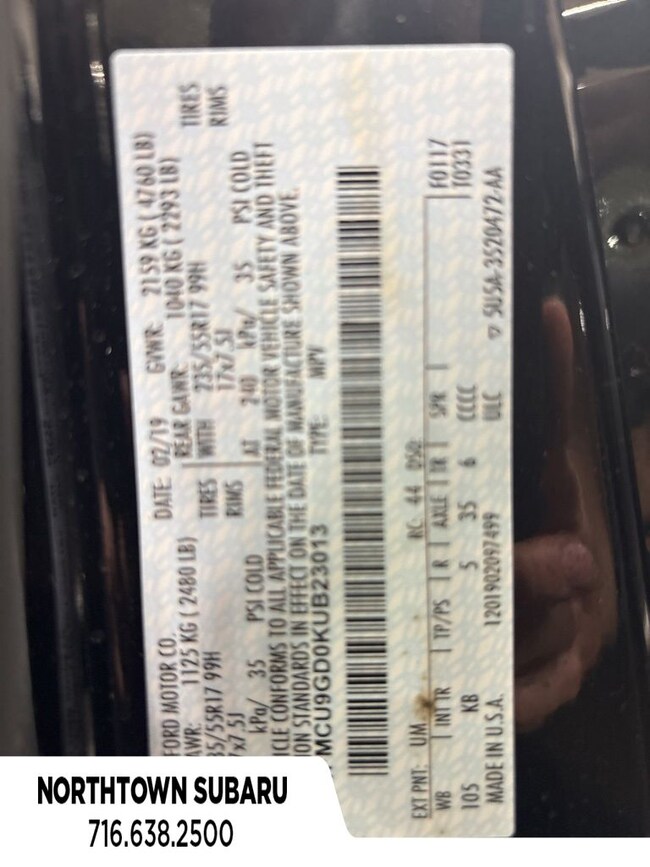- VIN : 1FMCU9GD0KUB23013