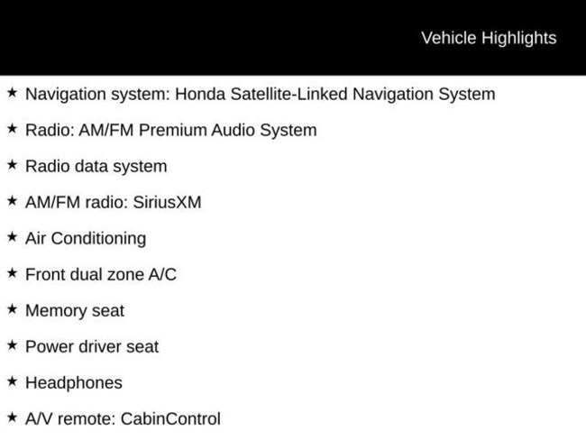 - Navigation system: Honda Satellite-Linked Navigation System