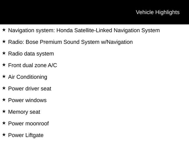 - Navigation system: Honda Satellite-Linked Navigation System