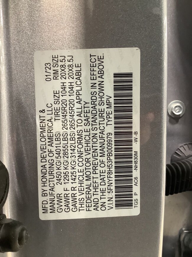 - VIN : 5FNYF8H53PB009979