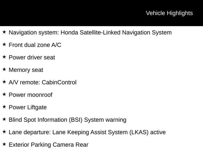 - Navigation system: Honda Satellite-Linked Navigation System