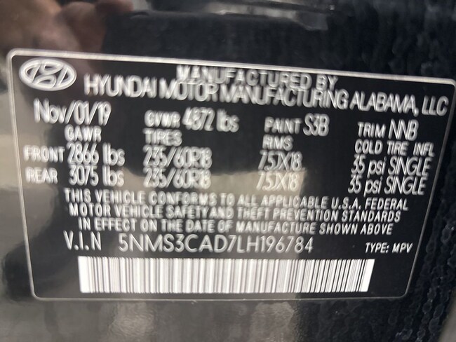 - VIN : 5NMS3CAD7LH196784
