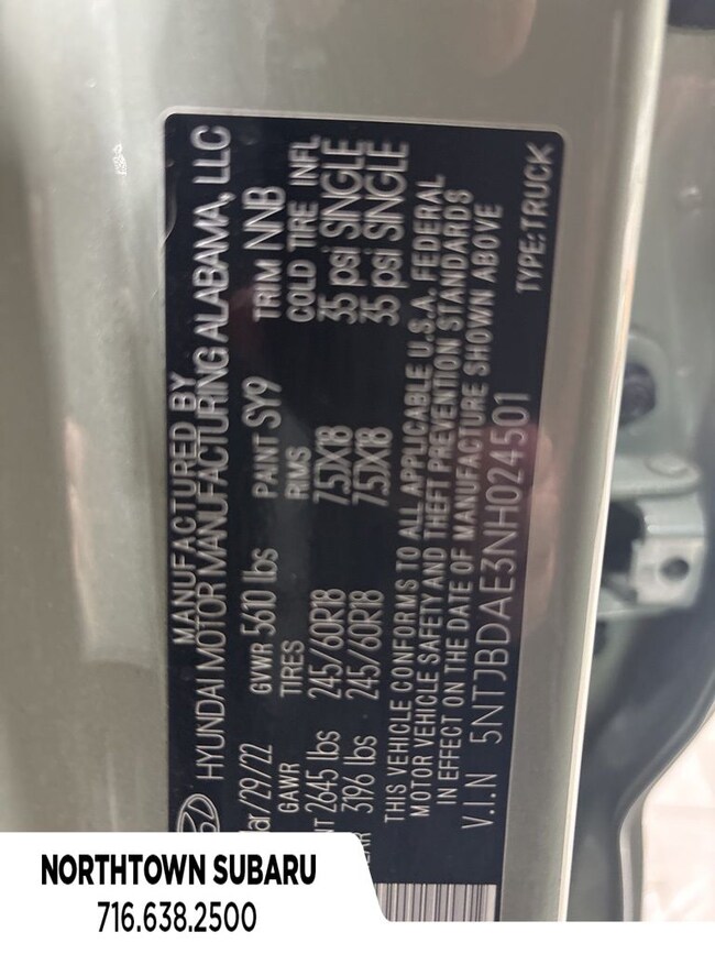 - VIN : 5NTJBDAE3NH024501