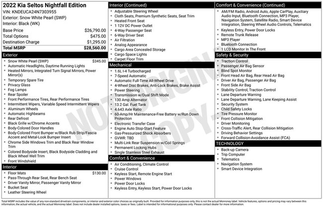 - Exterior Color : Snow White Pearl Interior Color : BLACK