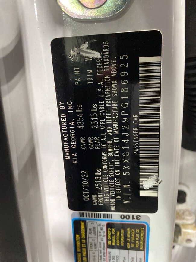 - VIN : 5XXG14J29PG186925