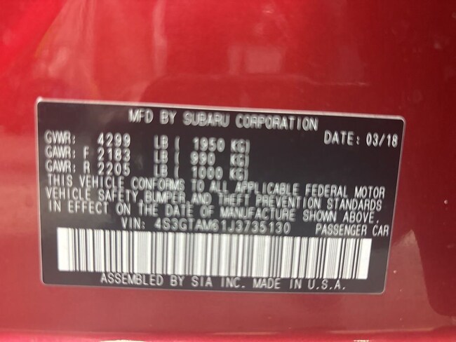 - VIN : 4S3GTAM61J3735130