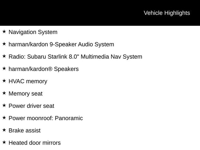 - Adaptive Cruise Control: EyeSight Adaptive Cruise Control